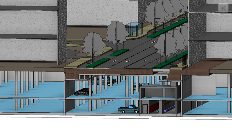 項(xiàng)目進(jìn)行了綜合管廊與地下空間的合建、點(diǎn)—線—面結(jié)合的地下空間總體布局,采用了 靈活可行的綜合管廊與地下空間分期開發(fā)策略,并結(jié)合了BIM進(jìn)行設(shè)計(jì)。