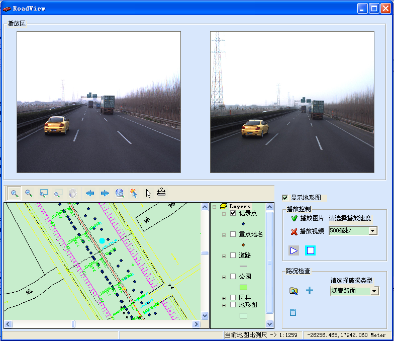 通過對移動道路測量系統(tǒng)(MMS)的應用和開發(fā),為城市道路建立了可視化的圖庫環(huán)境,獲道路路況所需的各種數(shù)據(jù)和信息,實現(xiàn)了路況調(diào)查自動化。本成果實現(xiàn)了以下功能:在道路影像圖上進行三維坐標及距離的量測;生成符合《公路技術狀況評定標準》的路況調(diào)查報表;本成果在嘉瀏高速公路大修工程、A9公路入城段進了應用,作業(yè)效率提高了50%。