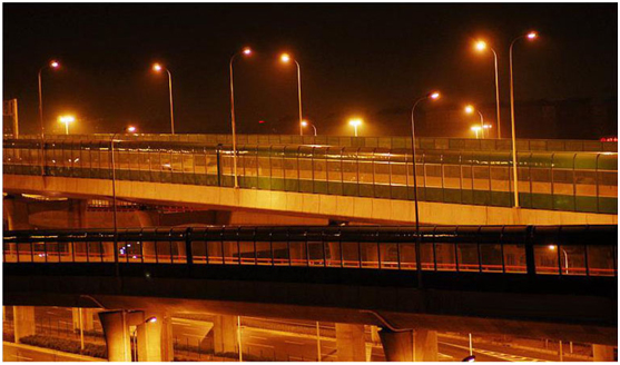 上海市內(nèi)環(huán)線浦西段全長(zhǎng)47.7Km,是雙向四車道城市快速高架路,設(shè)計(jì)時(shí)速80Km/h。現(xiàn)有路燈約1850套,使用了20年的內(nèi)環(huán)高架浦西段1850套高壓鈉路燈將全部更新,用金鹵燈和LED燈代替。