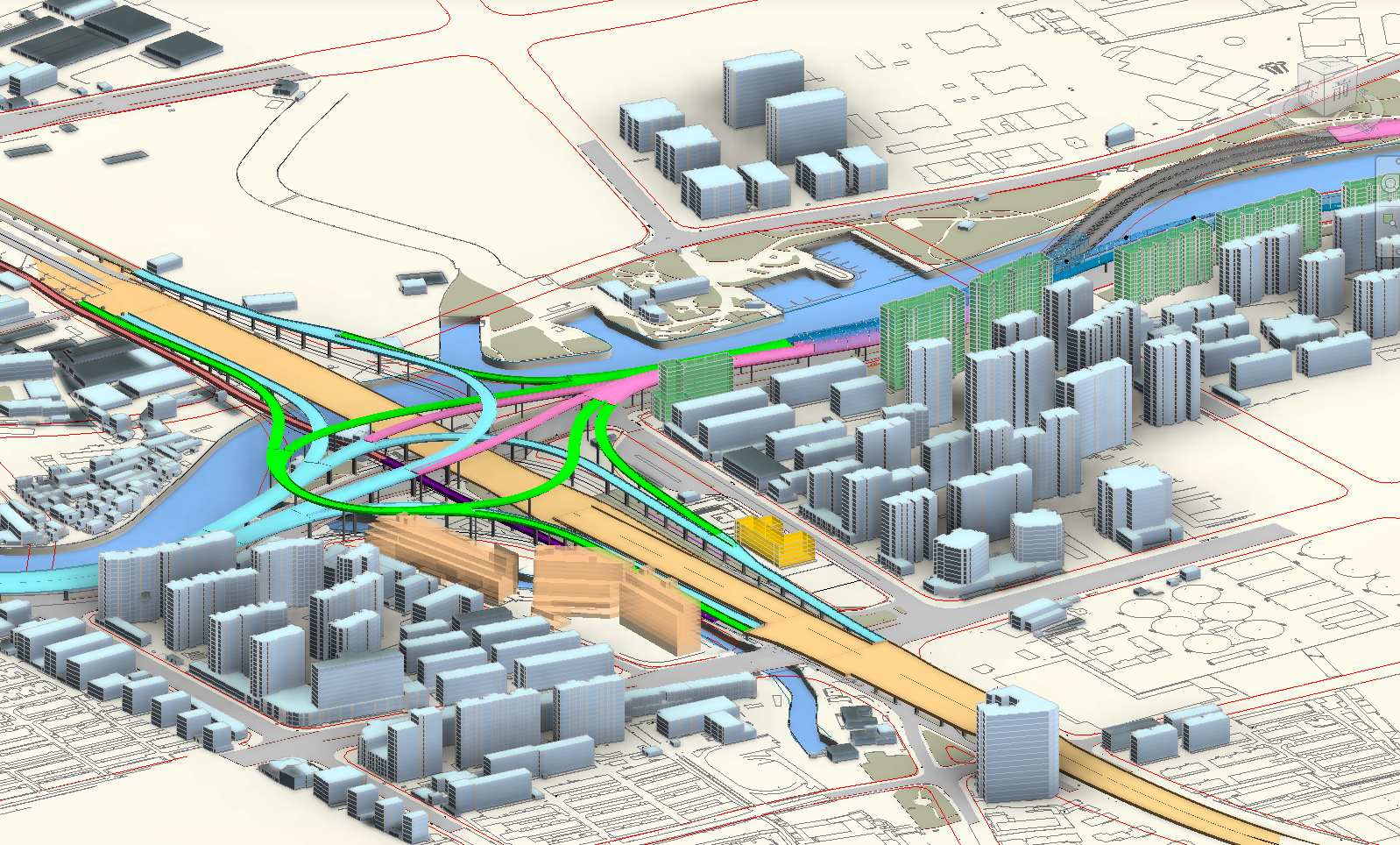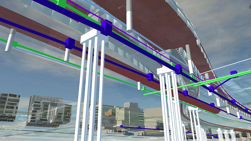 上海市北橫通道是中心城區(qū)北部東西向小客車(chē)專(zhuān)用通道,服務(wù)北部重點(diǎn)地區(qū)的中長(zhǎng)距離到發(fā)交通,是三橫北線的擴(kuò)容和補(bǔ)充。北橫通道這種大型復(fù)雜市政項(xiàng)目,牽涉到的專(zhuān)業(yè)多,工期緊,社會(huì)影響力大。該項(xiàng)目在推進(jìn)的過(guò)程中,BIM技術(shù)應(yīng)用緊跟設(shè)計(jì)、業(yè)主的需求,立足于設(shè)計(jì)的各個(gè)環(huán)節(jié),有效輔助了工程的順利推進(jìn)。