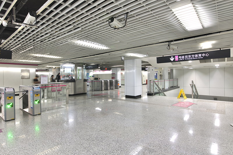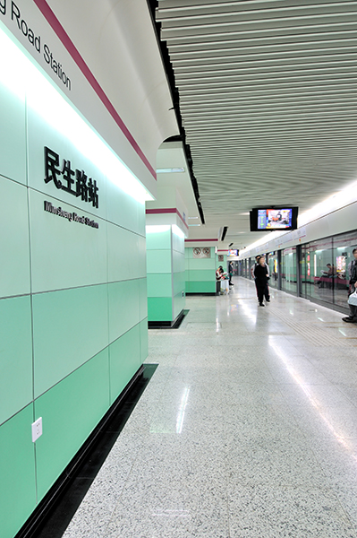 軌道交通6號線民生路站位于民生路西側(cè)的張楊路路中隔離綠帶下,呈東西向布置,為路中地下一層半帶存車線的淺埋敞開式側(cè)式站。車站全長284.7m,標準段寬度為19.6m,側(cè)站臺寬度為4m,總建筑面積7683m2。
