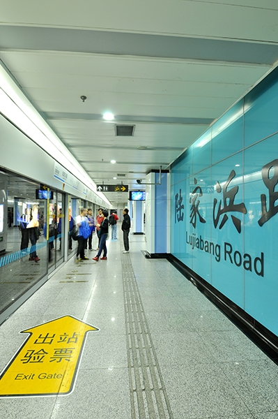 上海市軌道交通8號線陸家浜路車站設于西藏南路、陸家浜路交叉路口的西藏南路下,設計為地下二層島式站臺換乘車站,該站與9號線換乘。9號線車站沿陸家浜路布置,兩站呈“十”字型島-島換乘型式