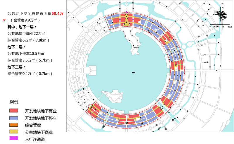 全長約1km,斷面尺寸BXH=5x4.2m,收納除雨水外的所有管線。