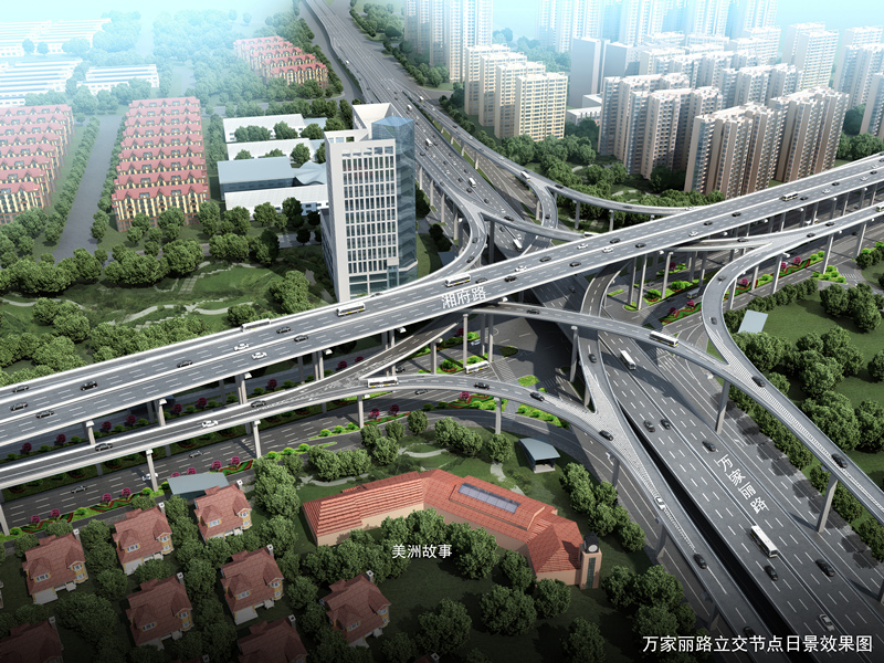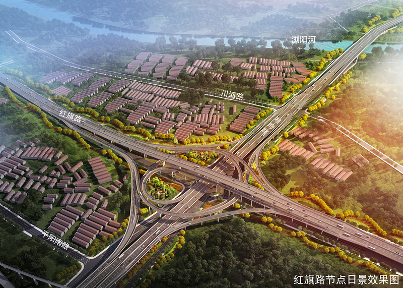 湘府路全長約12公里,建設規(guī)模為雙向6車道主路系統(tǒng)(高架/隧道)+雙向6/8車道輔路系統(tǒng),全線共設2座樞紐立交,9座一般立交。我院實現(xiàn)了從規(guī)劃功能提升、規(guī)劃方案研究、設計中標到施工圖設計的全過程主導,前后共歷時2年。