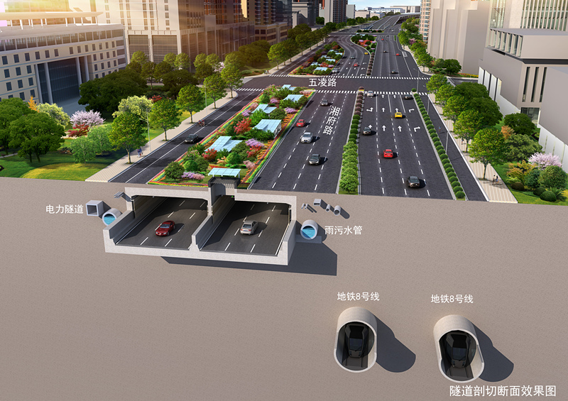 該項目高架段采用全預制拼裝施工方法,上部結構采用鋼混凝組合板梁和箱梁,是城市高架領域的新突破;項目隧道段與雨水箱涵、地鐵工程統(tǒng)籌協(xié)調。