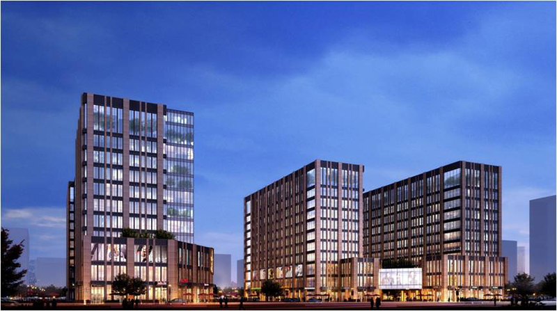主要建筑功能為商業(yè)和辦公。容積率3.0,建筑密度37.1%,總體綠化率不小于20.51%,建筑規(guī)劃高度49.9米。地下設(shè)置2層地下車庫,地上11層,其中1-4層為商業(yè),4層以上為辦公。兩地塊的地下車庫在地下一層二層分別設(shè)置連通口連通。
